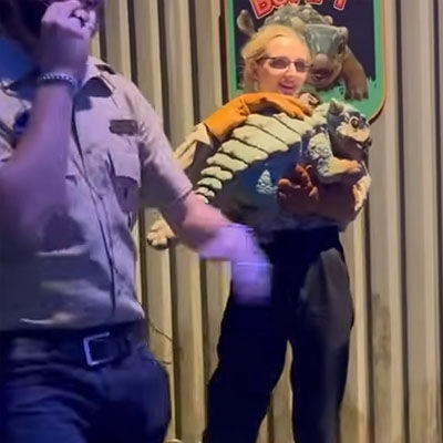 (2).当操作间的小恐龙演绎完成之后,游客从孵化间出来,还会突然遇见一只甲龙小宝宝。演员抱着小甲龙是突然出现的,满足游客还未完全从小恐龙宝宝的可爱走出来的情绪。同样地,演员抱着甲龙宝宝跟现场的游客互动,并讲述更多关于恐龙的知识,给予游客满满的情绪价值。