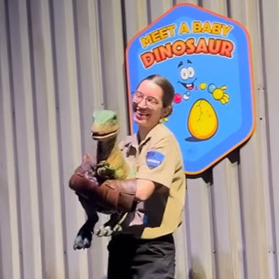 - 需要1个扮演饲养员的工作人员在此引导游客互动,提前了解恐龙的相关知识,并表演出惊恐感。