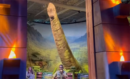 而在入门的3-5米处,就可以复制一只仿真腕龙头部模型,像是在迎接远道而来的客人。当然了,为了区分电影里的场景,您可以可以制作一只峨嵋龙或迷惑龙头模型以作代替。