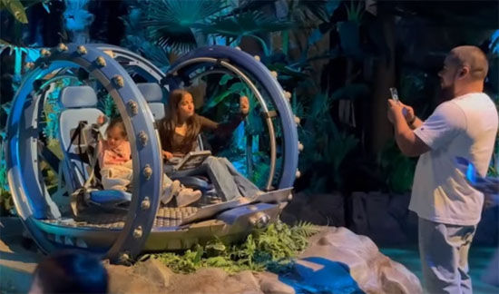 游客进入侏罗纪世界之前的第一站就是来到一个充满了数字科技的船舱里。里面会有导游讲解侏罗纪世界的公园历史,讲解游览公园规则,讲解里面的主角动物有哪些,讲解观赏时的各个注意事项。