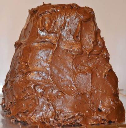 蛋糕胚的形状完成后,就是时候给火山身上涂上糖霜了!建议从底部开始涂抹霜糖。